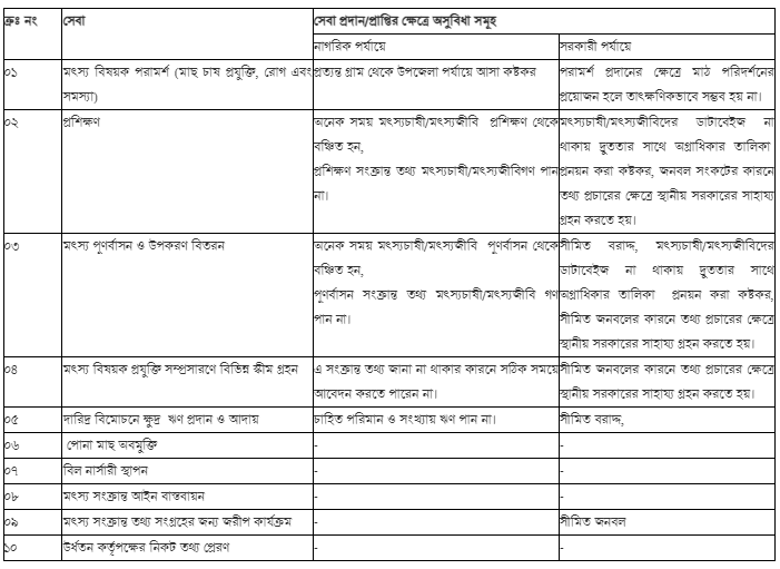 সেবার তালিকা